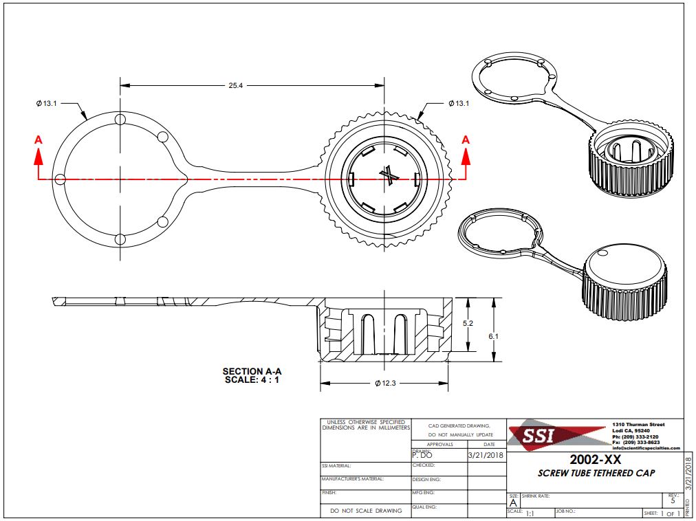 [SSIB2002-00S] Standard Cap with Tether, Clear (SSIBio)